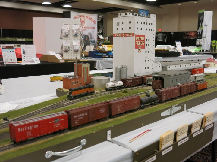 Above. Barry Karlberg, left, brought his Wye layout to St. Louis RPM in 2017. The great Charlie Duckworth is seated at right. Both guys are retired professional railroaders. Below are a few views of Clark Propst’s Allied Mills layout, which he brought to St. Louis in 2015.