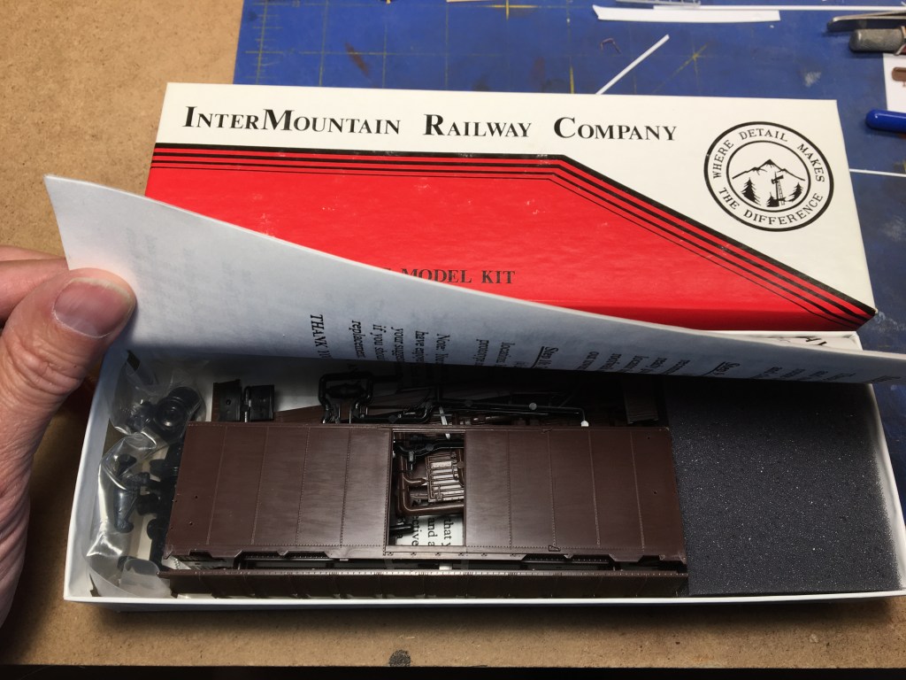 Turn the page six years. Let’s try again, this time with a now-hard-to-find undecorated Intermountain kit. I get rid of many of the parts–the trucks, running boards, grabs and the details and replace them all with better products. It’s about time for a 21st Century model of this car, isn’t it?