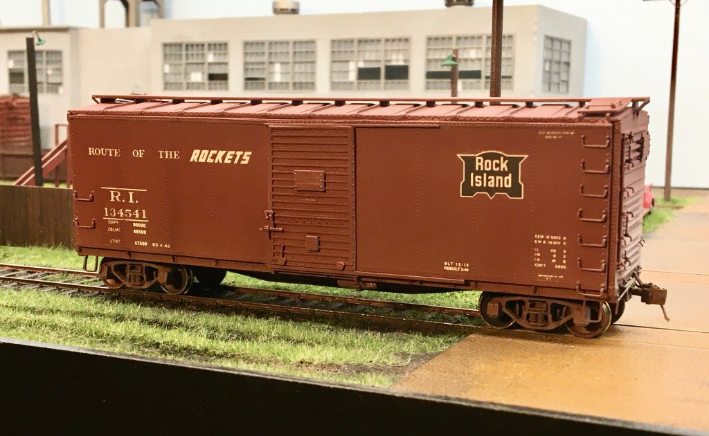Two of those models were Rock Island favorites. The first was an Intermountain 1937 Modified AAR car that needed to be stripped and repainted because I did a poor job of decaling and finishing the first time around. The second was a Sunshine Models USRA rebuild that I finished 15 years ago or so, which needed updating. I just finished those models last week Here’s the report, with a little history.