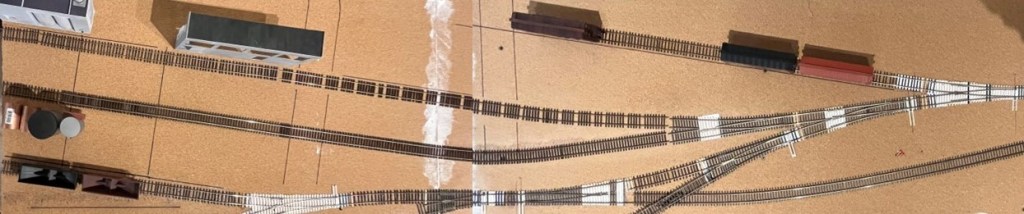 Eventually, all this track will look something like this. I’m striving for slight variation in tie spacing and color. This photo is from the first Hermitage Road layout. The ballast is finely sifted dirt from a roundhouse site.