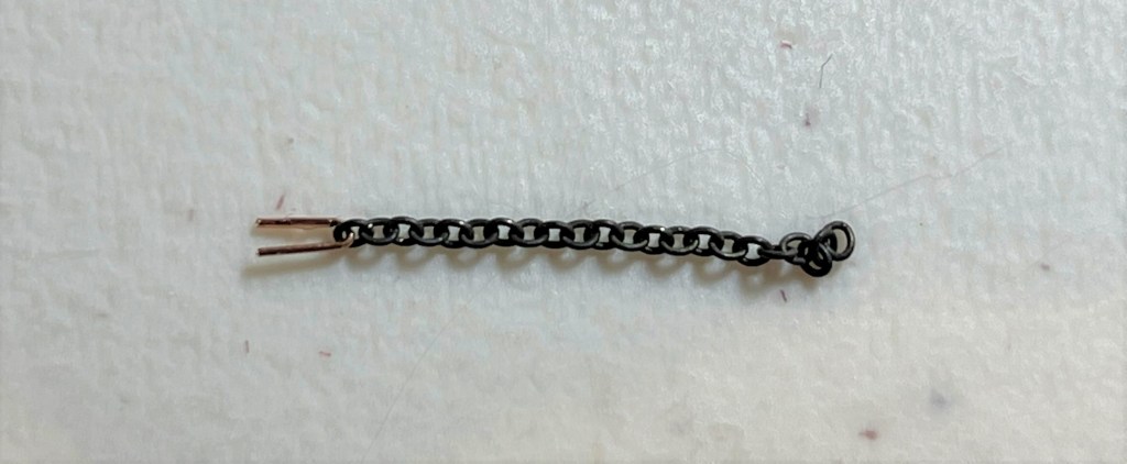 I connected the chain to the clevis at the cylinder piston using a short, .0125-inch piece of u-shaped wire. That allowed me to make an easy connection to the piston. Credit for that technique goes to Jerry Hamsmith.