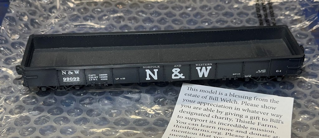 The car above is a Sunshine ATSF GA-49 gondola. I’d never seen one before I opened the box. It’s an awesome car and it immediately became one of my favorite models. Below is another Sunshine car, this one a rarity–an N&W G-1 low-side gondola.