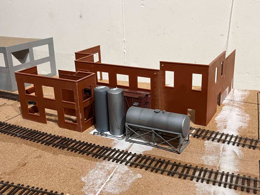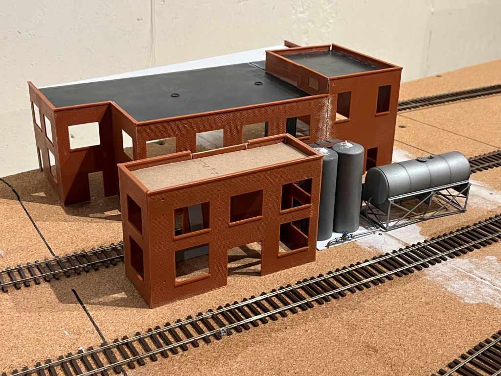 Another view, below. I need to find a small, square smokestack and some good roof vents for the building.