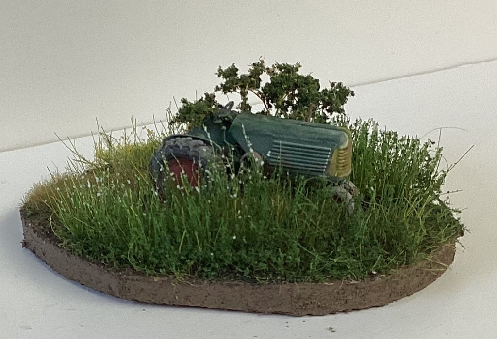 To cap it all off…Ron Christiansen sent me this the other day. This is something he whipped up in his spare time. It’s outstanding. He called it “Broken down Oliver in the weeds”. I really like the flower buds in the foreground. Ron said he brushed on a little glue and then blew Scenic Express flowers across the scene.