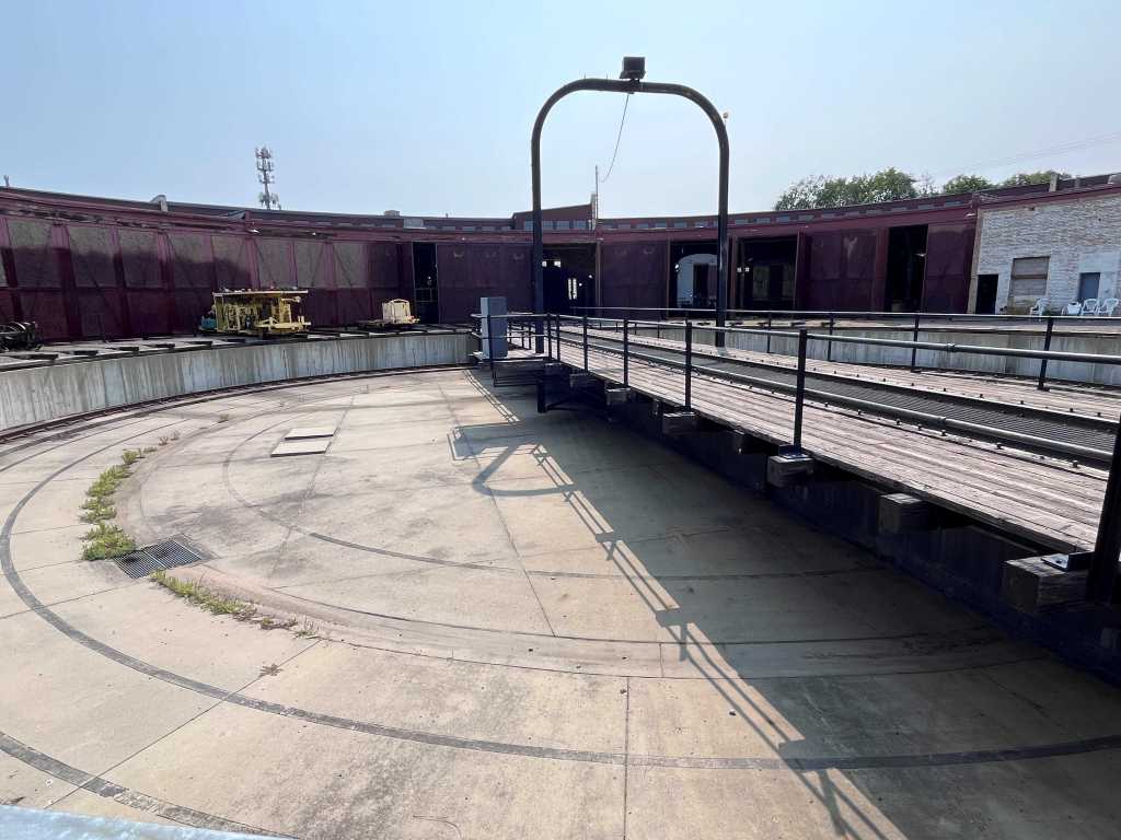 Below. The GN turntable is in fine shape, and operating, but nothing in the roundhouse is accessible. In fact most of the property is closed off to the public.
