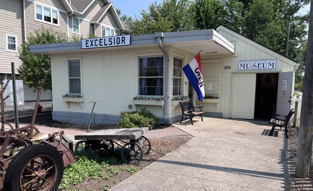 Below. Here’s one of the cars on the new Excelsior streetcar line, which runs on new track laid on the old M&StL roadbed. They have several nice cars and a big car barn. The cars are in beautiful condition and run back and forth on about a mile or so of track. The new line ends right here at the M&StL depot, but the folks here told me they hope to push it another mile or two in both directions soon.