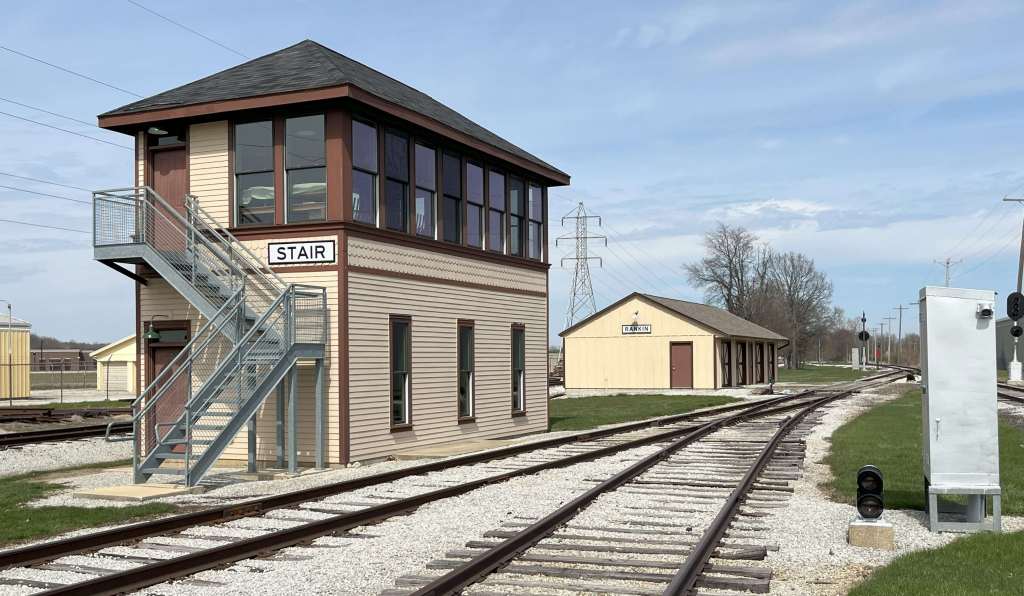 Below. On the north side of the museum stands this brand-new interlocking tower, some tool and storage sheds, and a huge car barn that houses much of the museum’s rolling stock collection. I was told the tower can control all the signal equipment on the property and safely govern trains. The signal equipment includes a neat mix of old and new, B&O and PRR, color-light and semaphore, and so forth.