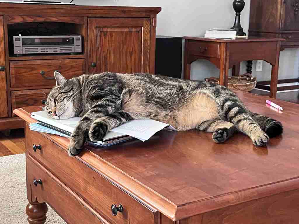 Finally–in a view from a few days ago–here is Benji the Cat, distraught that has to leave his happy hunting grounds. Yeah, he’s a giant!