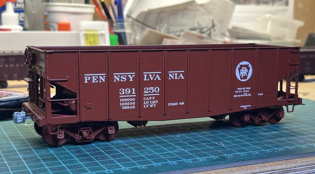I used decals from K4 on this car and I’m pleased with them. I’ve found in many cases that K4’s HO decals are either too large dimensionally or not printed quite clearly. Not so with K4’s PRR GLca decal set–it is accurate, clearly printed and dimensionally correct. This model is waiting for a shipment of Dullcote from the US and good painting weather.