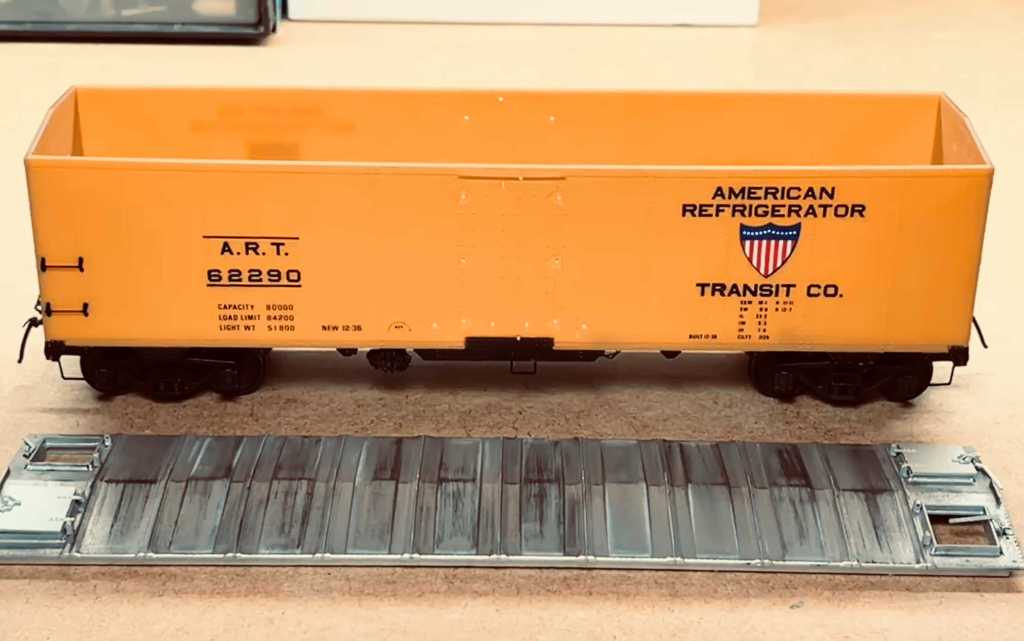 On my workbench right now are three new freight car models. One is an HO scale, Westerfield Milwaukee Road gondola I acquired from the Larry Sexton estate. Larry started it and I am finishing it now. The other two are these O scale models shown below. First is an old ART refrigerator car. This is an ancient Intermountain kit and it’s a fast and easy build. I’m replacing quite a few parts and assemblies with after-market items which make assembly even faster. The factory paint is excellent.