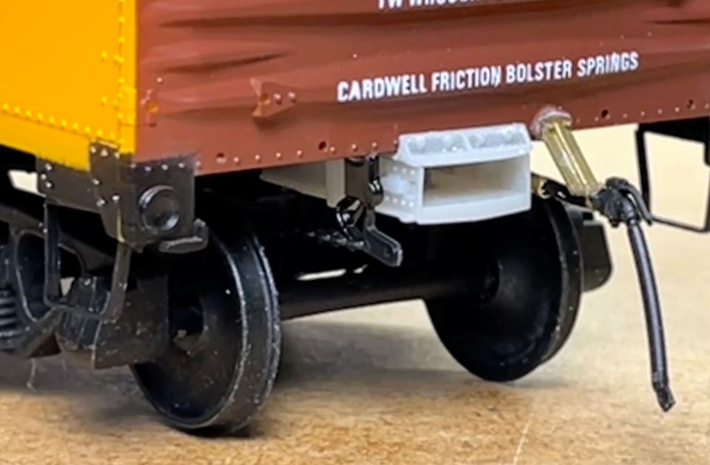 I asked Alex if there was a centering spring option, and he reported, As for centering springs our draft gearboxes have a nub behind the coupler post to allow you to install a customer-provided coil spring that would act as a centering spring. I have tested a Kadee spring and it wasn’t quite strong enough. I don’t design any coupler with a self-centering feature in mind as did Frank Sergent, the original designer of these scale style couplers. My predecessor did not believe in having them either, and prototype do not have a self-centering feature either.
