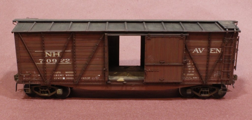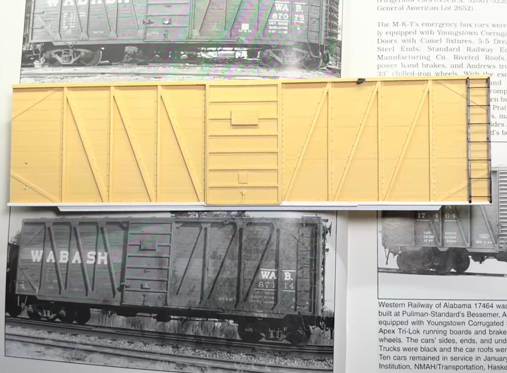 This is a NKP car but Tony needs a few more Wabash cars for his layout, so I’m finishing this as a Wabash model for him. Wabash War Emergency box cars had a different bottom side sill so I made the additions using styrene strip. A few rivets will complete the details. The gussets, by the way, were an addition in the later 1950s and aren’t appropriate for a 1953 car, so luckily I don’t have to make that change.