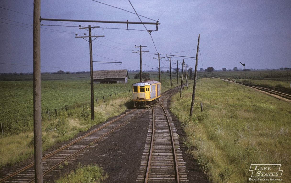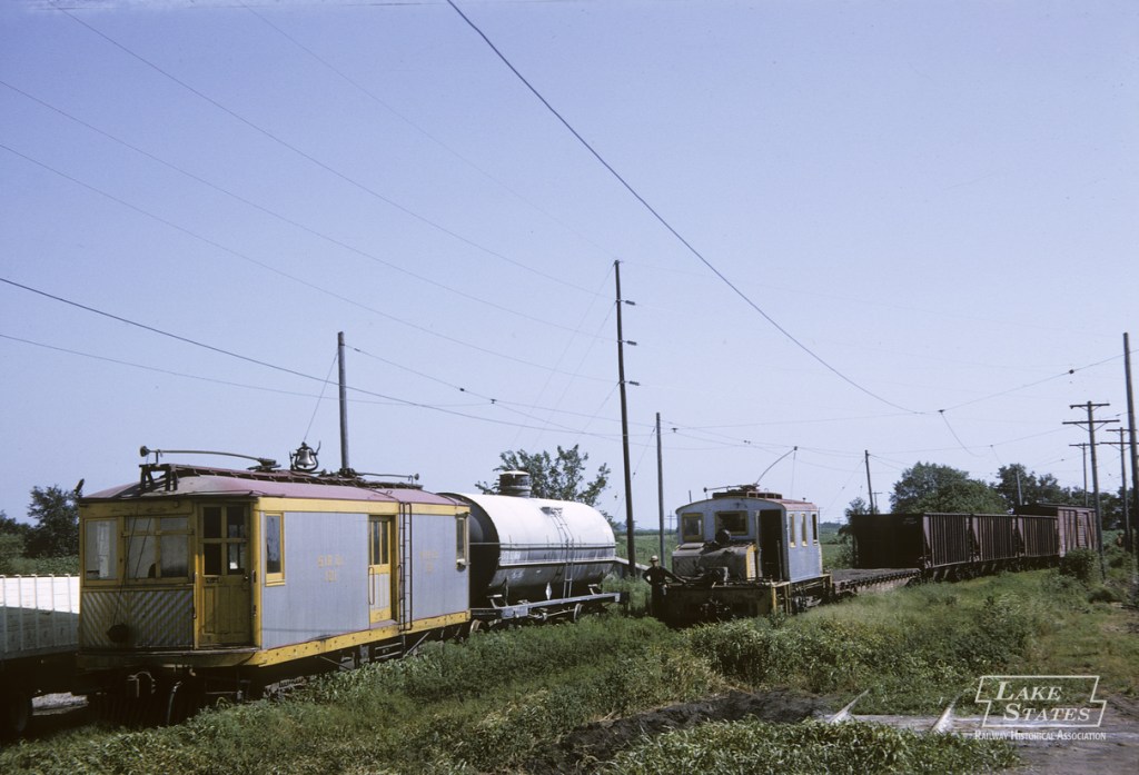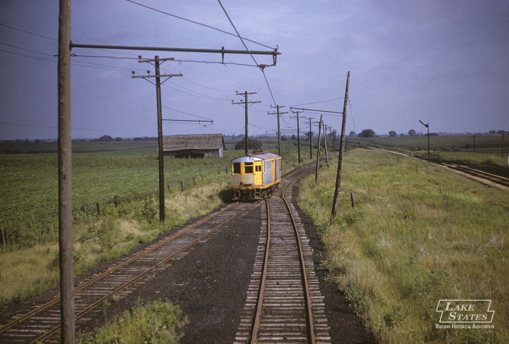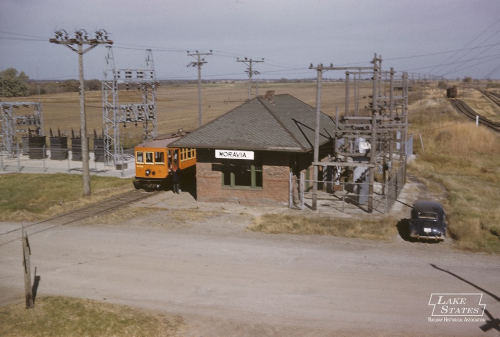 Below. I’m not a big trolley fan but I felt I should include at least one trolley pic in this feature. This is a Larry Kosta photo from the Lake States Railroad Historical Society Archive, and shows Car No. 9 southbound at Moravia in 1958. The view is looking north. On the extreme right is the Wabash main line, and the car between the ‘Bash and the SIR is on an interchange track. The SIR had five interchanges on it’s 25-mile route.