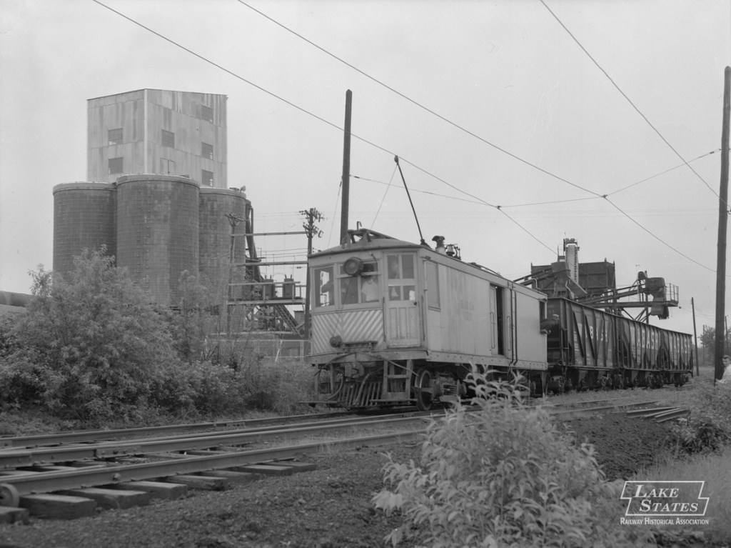 Below. Here’s a photo of a SIR engine near the freight interchange with the Wabash in Moravia, Iowa–right about in the middle of the railroad. The “box motor” seen below is one of two operated by the SIR. Lake States RHA Archive.