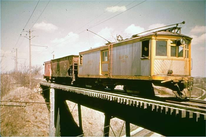 The big city on the SIR was Centerville, where the little electric trains interchanged with the CB&Q and served a large brickyard, a power plant, and several other industries. The line maintained a car barn downtown for trolley cars until the end. Photo below by Rich Wilson.