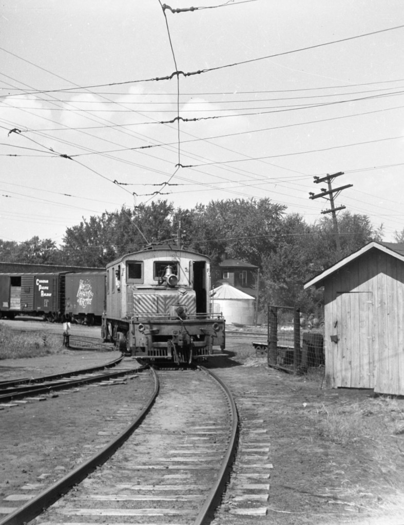Below. Freight action in Moravia, circa 1957, with Box Motor 101 and Baldwin-Westinghouse B-B 400 switching cars. Lake States RHA Archive.